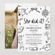 Hon gjorde det! 🎓✨ Fira din examen på det mest stilfulla sättet med denna moderna handritade ”She Did It”-inbjudan till examensfest. Designad med lekfulla svarta klotter, minimalistisk typografi och chic handritade detaljer, känns denna inbjudan trendig, självsäker och full av personlighet 🤍🖤 Med examensikoner, slingor, böcker och firande skisser fångar den perfekt glädjen över denna stolta milstolpe. Perfekt för examina från gymnasiet, högskolan eller universitetet, sätter denna redigerbara fotofestinbjudan tonen för en rolig, modern fest fylld med skratt, minnen och stora framtidsdrömmar