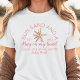 Letar du efter en brudklänning för ett strandtema för möhippa?, denna design har handritad sjöstjärna med modern text i mörk rosa som lyder “sol sand och en ring på min hand”, (brudnamn) möhippa och plats. Perfekt för en blivande brud som letar efter en outfit för en möhippa vid stranden med dina brudtjejer.