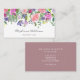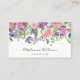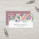 Vattenfärgsarrangemang med blått, lila och rosa blommor i blommigten.