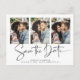 Modern handskriven Spara Många-fotokortet i svartvitt i ett typsnitt som är elegant och framkallar en romantisk handskriven känsla. Designad för använda av tre av dina favoritfoton för ytterligare anpassning. Lägg enkelt till namn och data för en verkligt personlig. Kontakta oss på cedarandstring@gmail.com om du behöver hjälp med designen eller matchande produkter.