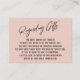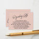 De här enkla, distinkta kortinfogningarna var designade för att matcha andra objekt i ett växande evenemangspaket som har ett modernt avslappnad-handskriftsteckensnitt över en vanlig bakgrund som du kan byta till valfritt färg. På framsidan läser du "Om gåvor" i den aktuella typen. På baksidan har jag placerat ett matchande "Kärlek och tack". Redigerbar text återges i ett versalteckensnitt, serif-teckensnitt. Mitt ställe-innehavarbudskap lyder: "Det viktigaste sak är att ha er med oss på vår speciella dag. Inga gåvor behövs eller förväntas, men vi har blivit tillfrågade om vad vi behöver eller skulle vilja. Om ni vill göra något åt ge skulle det vara mycket uppskattat om pengarar kunde spendera på vår smekmånad." Du kan fritt använda mallen fält och redigera den här kopian med ditt eget meddelande om du vill göra korten till dina egna. 151