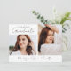 Meddela dina student landvinningar och planer med den här snyggten, det moderna fotot-studenten-meddelandet. Visningarna 2 foton - 1 vågrät och 1 lodrät foto. "Student" visas i ett trendig, handskrivet svart skript. Anpassa meddelandet till studenten och student namn. Tillkännagivandet återgår till visning av ett ytterligare foto med anpassningsbarnas text i svart text. Detta meddelande om tre foto studenten är perfekt för högskoleexamen eller högskoleexamen.