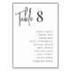 Enkla kort för bordsnummer och chic i klassiskt svartvitt gör en elegant påstående vid bröllop eller händelsen. Designfunktionerna "bord [nummer]" i handskrivet skriptbrev, med enskild gäst namn under i tidlös serif-typografi. Utformningen upprepas på båda sidor.