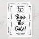 Den här moderna minimalistiska Bröllop spara datum-mallen för funky och retroaktiv användning är underbar för dig. Om du är tittar för en söt, elegant och enkel att anpassa Bröllop spara datum-mall.En mycket elegant enkel inbjudan till bröllop spara datum med svart och vit fetstil och vit chic. Med minimal svart färg sparar du datumet för fet typografi på vanlig vit bakgrund i hand plockade hjärtan ram och bröllop ringar. Ta tag i snyggten bröllop spara datum och gör inbjudan verkligt engagerat.