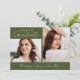 Meddela dina student landvinningar och planer med den här snyggten, det moderna fotot-studenten-meddelandet. Visningarna 2 foton - 1 vågrät och 1 lodrät foto. "Student" visas i ett trendig, handskrivet, vitt skript med oliv grönt bakgrund. Anpassa det oliv grönt studenten-tillkännagivandet med året och student namn. Tillkännagivandet återgår till visning av ytterligare ett foto med anpassningsbarnas text i vitskrift. Detta meddelande om tre foto studenten är perfekt för högskoleexamen eller högskoleexamen.