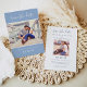 Två bröllop spara datum-annonskort i snyggt innehåller bara två bilder i förlovningen och modern anpassningsbar. Anpassa kortmallens ordalydelse på kortets framsida och baksida till din stora dag. Den dammiga blå/molnblå bakgrunden och den vita texten färg kan anpassas för att samordna med ditt bröllop färg-schema.