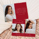 Meddela dina student landvinningar och planer med den här snyggten, det moderna fotot-studenten-meddelandet. Visningarna 2 foton - 1 vågrät och 1 lodrät foto. "Student" visas i ett trendig, handskrivet vitt skript med röd bakgrund. Anpassa meddelandet om det röda studenten med året och student namn. Tillkännagivandet återgår till visning av ytterligare ett foto med anpassningsbarnas text i vitskrift. Detta meddelande om tre foto studenten är perfekt för högskoleexamen eller högskoleexamen.