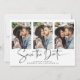 Modern handskriven Spara datumfoto-kortet Många i ett typsnitt som är elegant och framkallar en romantisk handskriven känsla. Designad för använda av tre av dina favoritfoton för ytterligare anpassning. Lägg enkelt till namn och data för en verkligt personlig.