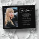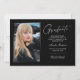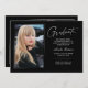 Dubbla sida vid sida, två fotomoderna och elegant studenten-annonskort med inslag av modern text med ett unikt handskrivet stil bläck-skript i vitt för mörkare bakgrundsval i färg. Fotona på student:s framsida och baksida av kortet accentueras med ett känsligt och minimalistiskt övertoningsmärke. På kortets framsida finns det textblanksteg för personlig som ger information om studenten. Svartvit eller anpassa bakgrunden så att den passar din skolas primära färg eller valfritt färg. Perfekt för högskolan, högskolan och universiteten grad student.