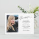 Dubbla sida vid sida, två fotomoderna och elegant studenten-meddelandekort, med inslag av modern text med handskrivet stil-kalligrafi-bläck-skript. Fotona på student:s framsida och baksida av kortet accentueras med ett känsligt och minimalistiskt övertoningsmärke. På kortets framsida finns det textblanksteg för personlig som kan användas för information om studenten eller som kan raderas om du vill skicka ett meddelande till skrivan. Svartvit eller anpassa bakgrunden så att den passar din skolas primära färg eller valfritt färg. Perfekt för högskolan, högskolan och universiteten grad student.