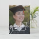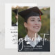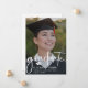 Elegant examensmeddelande med två foton av högskole- eller gymnasieexaminanden. Examenmeddelande kort med handskriven typsnitt helsidesporträttfoto på framsidan med namn och examensdetaljer. Baksidan har ett andra foto med ytterligare information. Klicka på redigeringsknappen för att anpassa denna design.