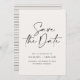 Modern stiltypografi med fet bröllop spara datum-kort. Med modern elegant, typografi och strimlad bakerdesign. Färg kan anpassas.