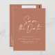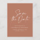 Modern stiltypografi med fet bröllop spara datum-kort. Med modern, elegant contemporary-typografi terracotta och vit design. Färg kan anpassas.