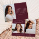 Meddela dina student landvinningar och planer med den här snyggten, det moderna fotot-studenten-meddelandet. Visningarna 2 foton - 1 vågrät och 1 lodrät foto. "Student" visas i ett trendig, handskrivet, vitt skript med en maronbakgrund. Anpassa tillkännagivandet om studenten i sjön med året och student namn. Tillkännagivandet återgår till visning av ytterligare ett foto med anpassningsbarnas text i vitskrift. Detta meddelande om tre foto studenten är perfekt för högskoleexamen eller högskoleexamen.