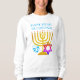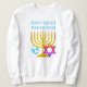 Modern HANUKKAH Menorah Dreidel unisex sweatshirt, med ANPASSADE och designad med faux guld menorah, färgstark stjärna av David och cyan blue färgad dreidel plus ANPASSADE HÄLSNING, så du kan skapa din egen hälsning. Perfekt för Hanukkah-säsongen. Välj från en stor del av Hanukkah-kläder och gåvor, designade av Berean Designer. Även svart.