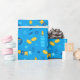 Detta moderna och trendig som omsluter papper är fantastiskt! Den har drömmar, gelt, David Stars, menorahs, banderoller och ljus i guld och blått. Få tillräckligt för att slå ihop alla dina presenter.