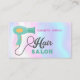 Hairdryer på holografisk bakgrund. En mångsidig design för kreativets professioneller och entreprenörer.Underbart val för skönhetsalonger, boutique, cosmetologists, spa, manager, florist, makeup-artist, evenemangsplanerare, insida-designer, yttre designer, konstruktörer, mode-konstruktörer. Utmärkt affärskort av hög kvalitet som kan anpassas med din information.