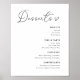 Anpassad bröllopsdessertmenys skylt affisch med elegant hjärta kalligrafi och modern svart-vit design.