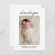 Modern and minimal flat thank you note cards feature a photo of your newborn baby with custom black (can be modified) Thank You text in a cute and stylish heart script font. Perfect to send as a little note of thanks to friends and family who have given gifts to the new baby. As the baby's name and birth statistics are included, this works double-duty as a birth announcement card. Card includes space on the back for a handwritten note.