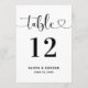 Modern Heart Script Wedding Table Number Inbjudningar