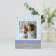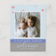 En modern födelseannons med hängande hjärtan och stjärnor med ditt favoritfoto på babyblått med födelseinformation. Baksidan av kortet kan du anpassa eller ta bort texten för det handskrivna meddelandet. JMR_Designs@yahoo.com om du behöver hjälp eller har några speciella önskemål.