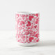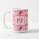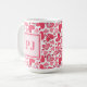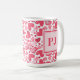 Modern mug featuring a pink and red Valentine's hearts pattern, with a custom monogram overlaid in modern fonts in matching pink. A romantic, personalized gift ideal for Valentine's Day or special occasions.