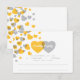 En djärv och modern OSA-design för ett icke-traditionellt par! Svarskort adorberas med mönster i hjärtan i ljust gult och neutralt grått. Baksidan innehåller utrymme för ytterligare text, eller en bröllop webbplats adress.