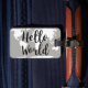 Cute "Hej World"-manuset med en vit världskarta silhuett.