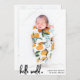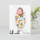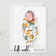 Modern Hej World Script Photo Newborn Birth Notice