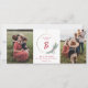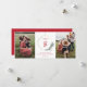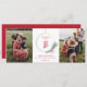 Ett modernt julfotokort med en enda familjefogram, två lodrät- eller porträtt-fotoöppningar med guld-vajerandning och asymmetrisk helgdag med gräs grenar, cypress och bär på en snövit bakgrund.
