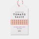 Modern hemmagjord tomatsås med rutig design presentetikett