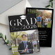Trendy bold grad typography class of year high school graduate photo black and white announcement card template. Easy to personalize with custom 2 photos and your text on both sides!