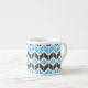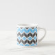 Denna moderna espresso kopp har en färglös geometrisk örringben mönster i himlar blå och mörk grått-nyanser.