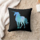 Svarta bakgrundskuddar med blå polygon stil Unicorn silhouette. Tryckt fram och bak.