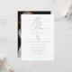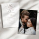 Denna moderna och kantiga kalligrafifoto i roséguld är en perfekt inbjudan till brudpar-duk till en modern eller minimalistisk bröllopsfest. Designen har en elegant men rustik typografi med ett av era foton på baksidan.