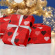 Modern hjärtan i Red Mid Century Presentpapper