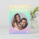 Holografik Ombre-gradient i neon färg rosa lila blue gult med fotomall modernt trendig personlig bröllop spara datum-kort. Det här kortet är enkelt att redigera. Om du behöver hjälp med att anpassa det här kortet eller om du behöver fler matchande produkter för den här samlingen ska du vänligen meddela mig via Zazzle.