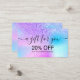 Vem tycker inte om en bra rabatt?! Behandla din höger med vår moderna holografiska design. Om du vill ändra teckensnittet stil, färg eller textplacering klickar du bara på knappen "Anpassa ytterligare". Om du behöver hjälp med designen, tveka inte att kontakta mig!