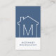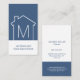 Gör ett minnesvärt första intryck med en anpassningsbar med monogrammat affärskort för lodrät i hemmet. All text på den här mallen är enkel att anpassa eller ta bort. Den moderna designen har en minimalistisk huskontur, snyggtens typografi inledningsvis och marinblått och vitt färg som påminner om klassiska ritningar. Detta kort är lämpligt för frilansföretagare, konsulter, småföretag eller professioneller för företagskontor, men är ännu en elegant. Kontaktinformationen i exemplet presenteras som ett byggnads- och byggföretag för bostäder, men kan vara personlig för alla bostadsrelaterade företag, t.ex. en handyman, städning tjänst, ombyggnad av entreprenör, snickare, målare, verkliga gods agent, arkitekt, insida-designer/dekorator, konsult för kadutkast, byggande chef, underhåll av gräsmatta, landskapsvård eller hemhjälp.