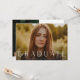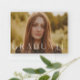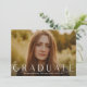 Denna moderna eleganta snygga foto-examensinbjudan har ett horisontellt foto och rubrik med anpassningsbar text på framsidan. Baksidan har en inbjudan detaljer och ett vertikalt foto. Klicka på redigeringsknappen för att anpassa denna design.