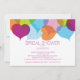Söt Inbjudningskort för möhippan med hjärtformade löv i lila, grönt, orange och blått på en modern och snyggt skarp vit bakgrund. Vänd på vår unika höstbröllopsduschinbjudan för att se en matchning för en speciellare beröring i extra.