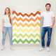 Den här moderna filten i fleece har ett trendig chevron mönster i en autumnal färg palett med grönt, gult och orangar.