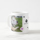 Modern kaffemugg med 2 av dina favoritbilder, dekorativa hjärtan, tassavtryck med din hunds namn.