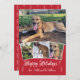 Ett modernt platt rött julkort med ett kollage av dina favoritfoton på din lurviga baby och ett vitt granmönster på baksidan . Den tillhandahållna mallen gör det riktigt enkelt för dig att anpassa det med din egen text och fotografier .