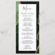 Den här eleganten har den moderna bröllop-menyn en vattenfärgad bakgrund i jägare grönt som trimmas med guld faux glitter. Texten visas i elegant, grått-handskrift och typsnitt på en vit rektangel. Den agate-designen upprepas på motsatt sida.