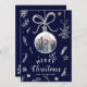 Modern illustration av boll-fotot i roligt med handmålad julprydnad, snöflingor, candy cane, mistletoe och inslag i jul, lägg bara till ditt familjefoto bakom övertäckningen med en modern och rustisk stil-manusattypografi. Den marinblå färg är fullt redigerbar.