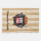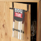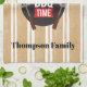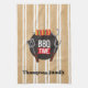 Modern illustration för BBQ fläkt. Bakgrunden är rand i vattenbrun och vit med din familj namn.