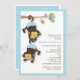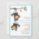 Två små baby-apor i blå blöjor från blommar gren gör det här till en söt barnduschinbjudan när man vet att det är två små pojkar på väg.