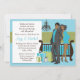 Cute Baby Shower-inbjudan för en pojke. Den här blå inbjudan innehåller ett modernt par med en lampa och en gnutta.