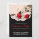 Värd er helgdag i stil med denna moderna julparsinbjudan med en djärv svart bakgrund, mousserande snö-accenter och festiva röda prydnadsföremål med en snöflingglasbaubel. Chicens kontrast mellan svart, rött och vitt gör att det är perfekt för eleganter, kontorsevenemang eller festliga familjers party. Anpassa enkelt med din händelseinformation för att skapa perfekten säsong inbjudan som anger en glatt och sofistikerad ton.